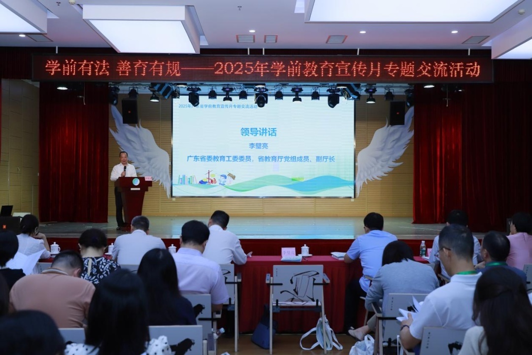6月10日,学前有法,善育有规——2025年学前教育宣传月专题交流活动在广州举行。本次活动由广东省教育厅指导,广东省教育研究院主办,广东技术师范大学、广东省育才幼儿院一院、广东省育才幼儿院二院承办,广东省外语艺术职业学院协办。省委教育工委委员,省教育厅党组成员、副厅长李璧亮出席活动并讲话,广东技术师范大学党委书记王兵及学前教育指导委员会代表、国内专家学者、各地学前教育工作负责同志、幼儿园代表共100多人参加现场活动。
